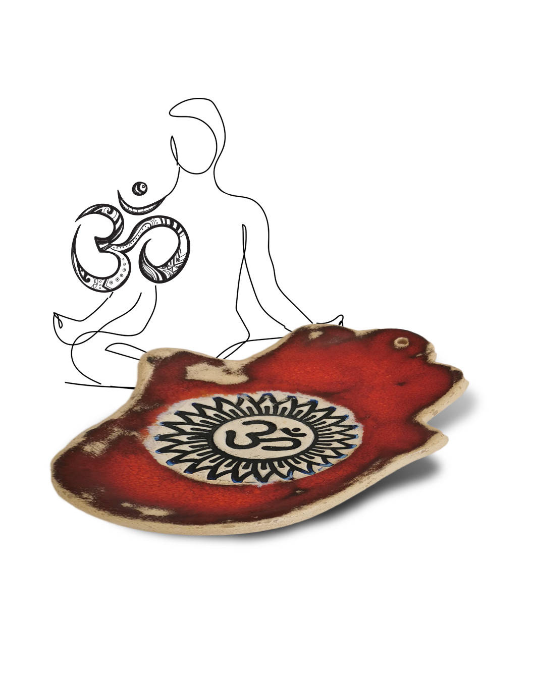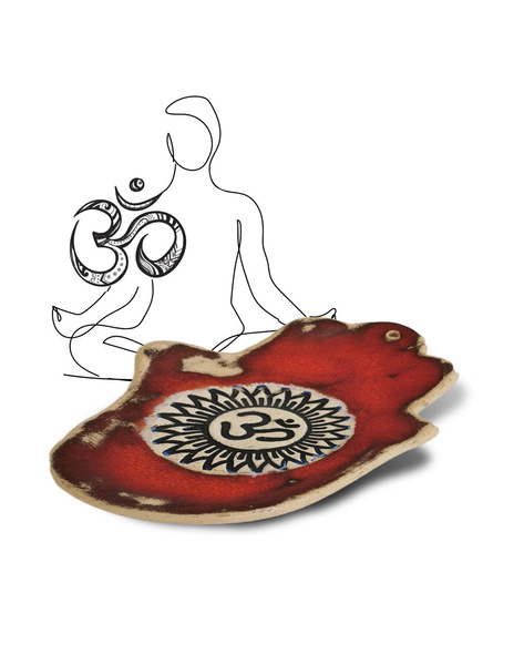 Prezentowana czerwona podstawka pod kadzidła Ręka Fatimy Om ma wzór świętej sylaby hinduizm. Om to sylaba postrzegana jako dźwięk powstania Wszechświata. Na niej opierają się wszystkie hymny wedyjskie. Jest to sylaba będąca najważniejszą mantrą i pierwotnym dźwiękiem.